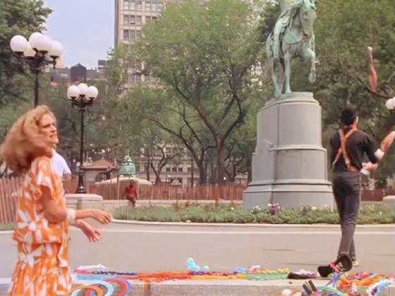 At 1:00:32, Gabriel Barre plays a very bad street mime who