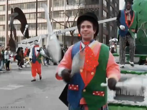 are seen in a Chicago Saint Patrick's Day parade for about 3 seconds.