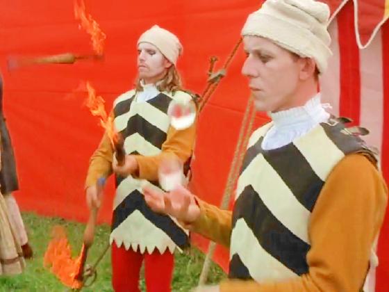 At 18:30, two jugglers are seen for 14 seconds, one with 3 torches and