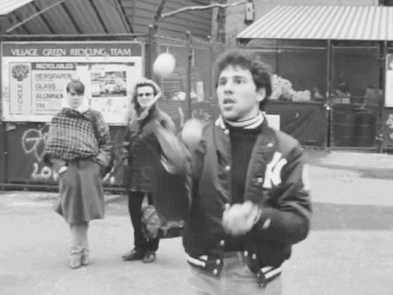 At 03:40, Ian Klapper appears as a street juggler,